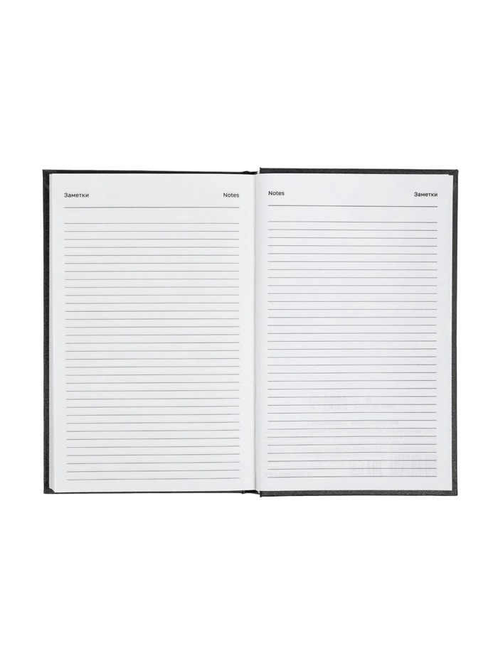Этот ежедневник создаёт нейтральную основу для ведения записей. Классический чёрный цвет обложки с надписью формирует строгий деловой стиль, а твёрдая конструкция из бумвинила обеспечивает долговечность при регулярном использовании.