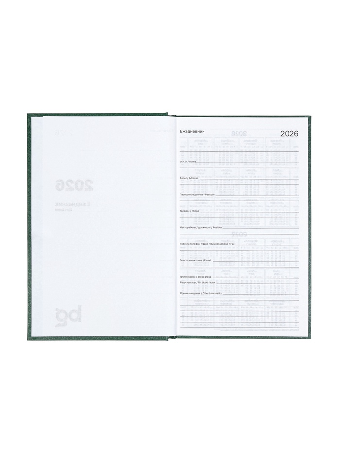 Ежедневник датированный Calligrata, А5, 2026, твёрдая обложка из бумвинила, 168 листов, тёмно-зелёный — Характеристики