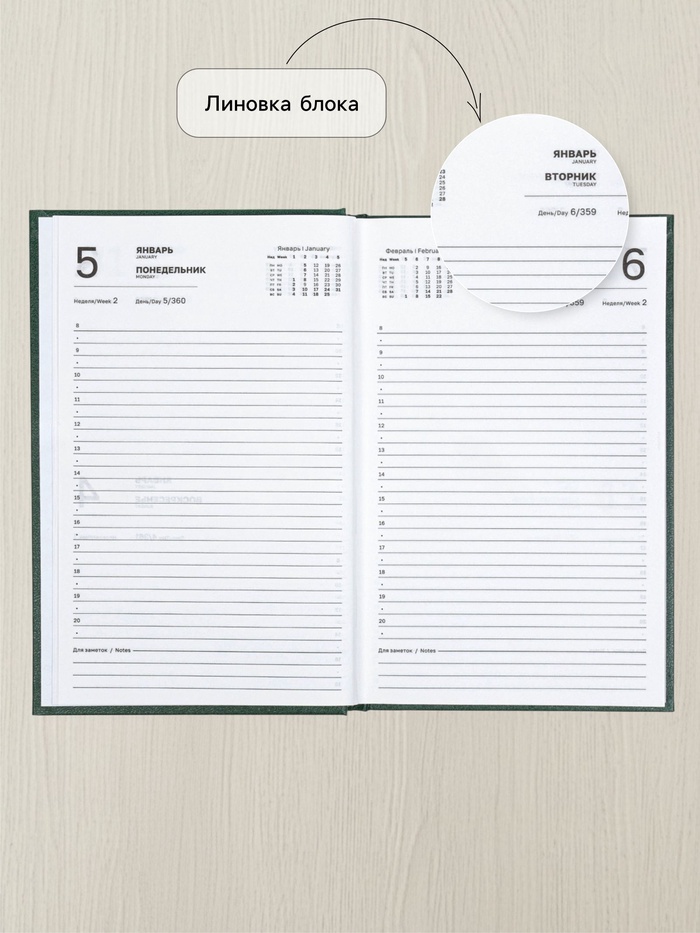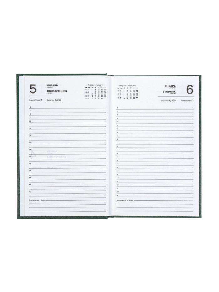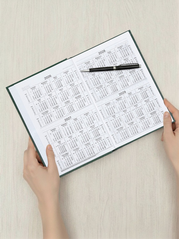 Этот датированный планировщик помогает сосредоточиться на важном. Тёмно-зелёный цвет обложки создаёт спокойный рабочий фон, а твёрдая конструкция из бумвинила сохраняет форму при ежедневном использовании.