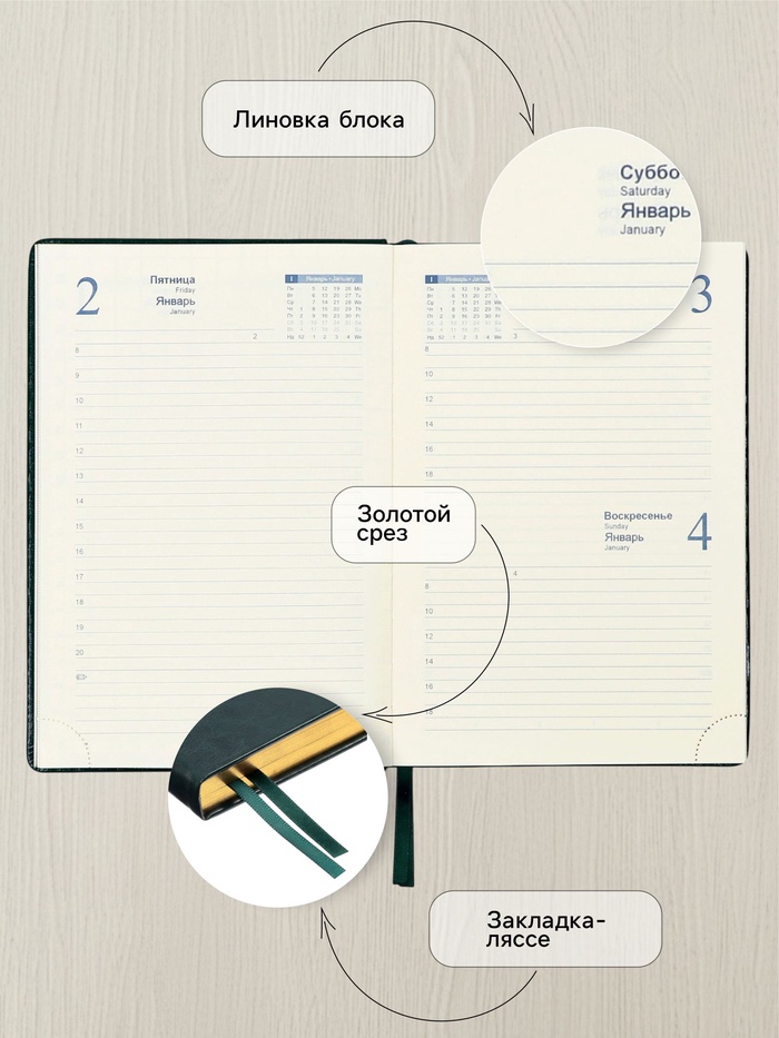 - Все страницы четко датированы, что избавляет от путаницы в датах и неделях.
