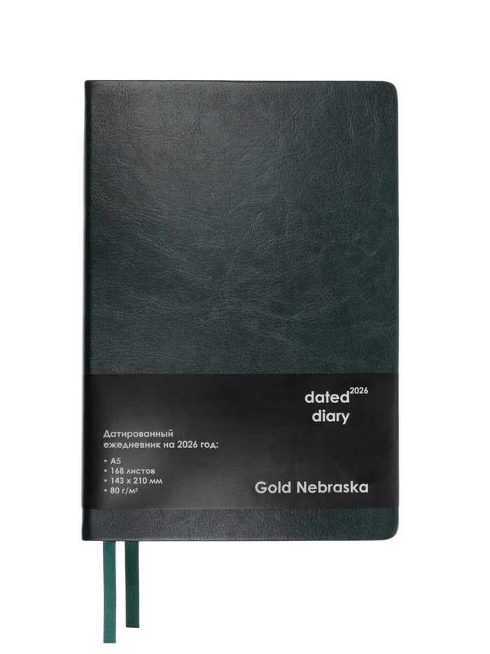 Ежедневник датированный Calligrata, А5, 2026, твёрдая обложка из искусственной кожи «Небраска», 168 листов, зелёный — Характеристики
