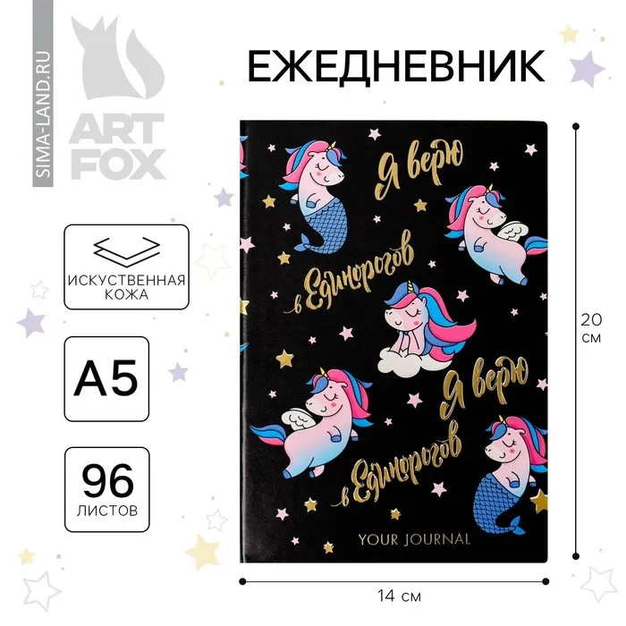 Ежедневник «Я верю в единорогов», 96 л, искусственная кожа — Характеристики
