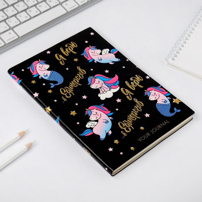 Ежедневник «Я верю в единорогов», 96 л, искусственная кожа