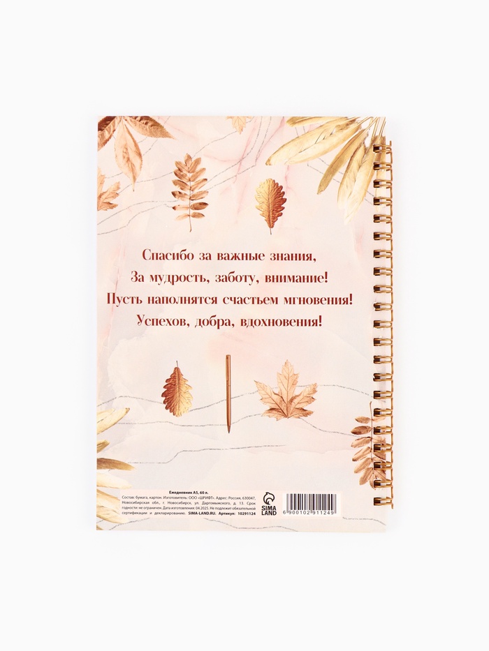 Ежедневник на гребне А5, 60 листов «Золотому учителю» — Характеристики
