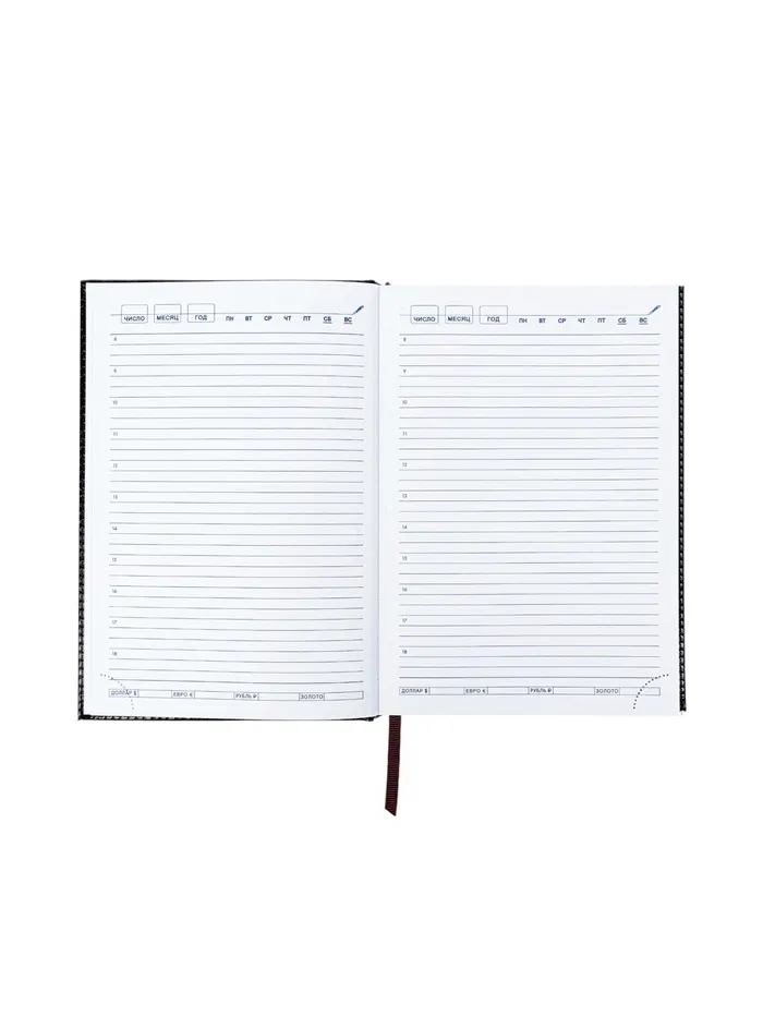 Ежедневник недатированный А5+, 136 листов Sidney Nebraska, твёрдая обложка, искусственная кожа, серебряный срез, чёрный