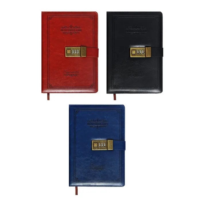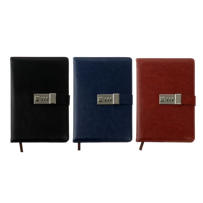 Ежедневник недатированный А5, 100 листов в клетку, с хлястиком, обложка кожзам (с кодовым замком) МИКС — Характеристики