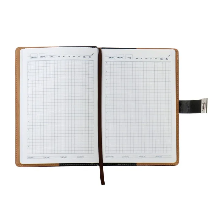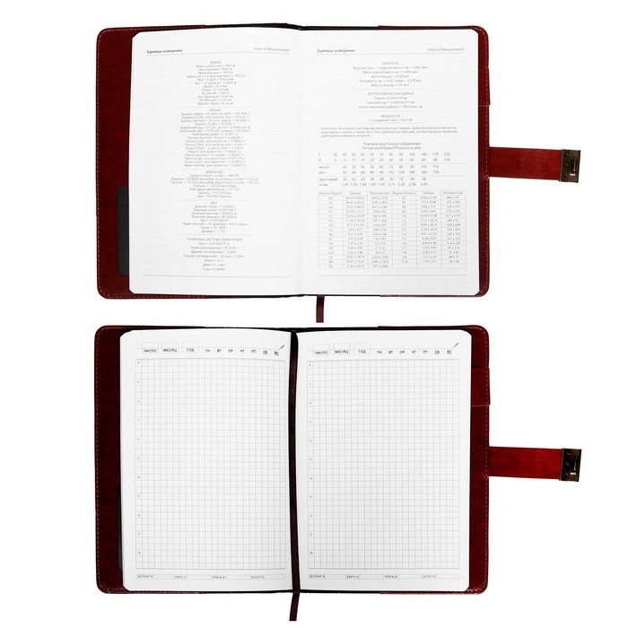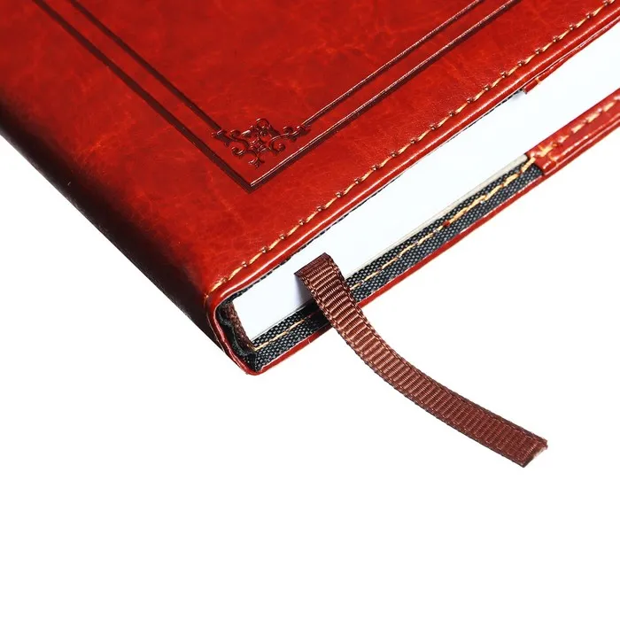 Внутренний блок включает 100 листов тонированной бумаги плотностью 70 г/м2.Каждая страничка имеет перфорированный угол.Благодаря стандартному формату А5 ежедневник удобно использовать как в офисе, так и на выездных деловых встречах.Твердая обложка, стилизованная под кожу, подходит для горячего тиснения.Дополнением является закладка - ляссе, с помощью которой при необходимости можно быстро открыть ежедневник на нужной странице.Помимо прочего ежедневник снабжен обширным справочным материалом.Ежедневник станет отличным подарком к любому празднику и событию.Стиль и изысканность, роскошь и практичность, совершенство снаружи и внутри - всем этим требованиям достойно отвечает продукция.
