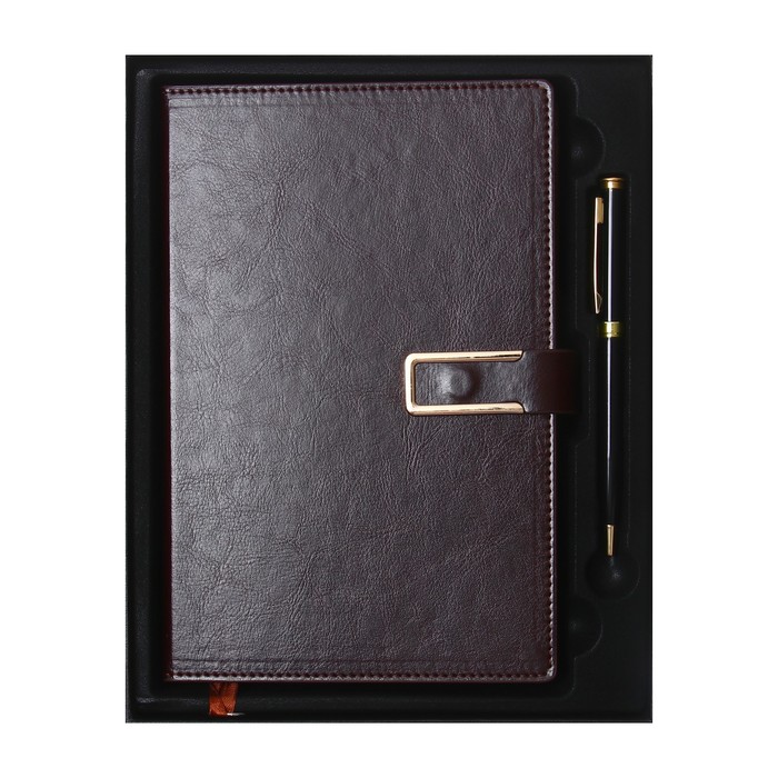 Ежедневник недатированный А5, 112 листов, в линейку, с ручкой, подарочная коробка, коричневый — Характеристики