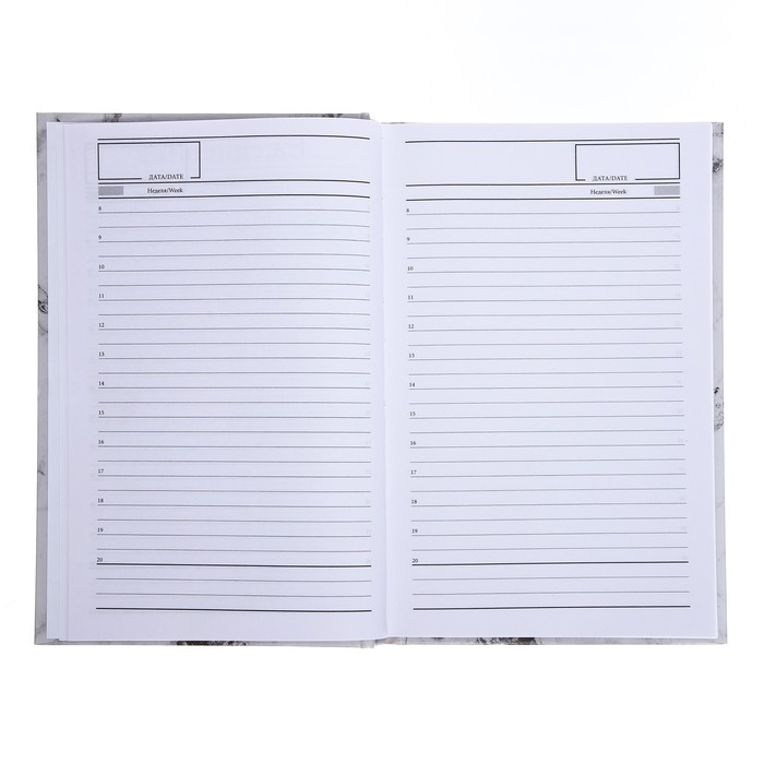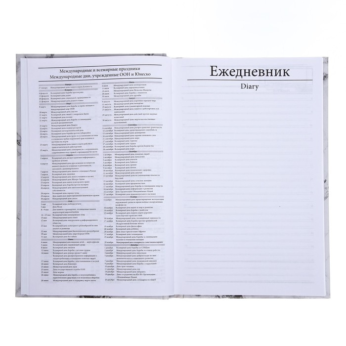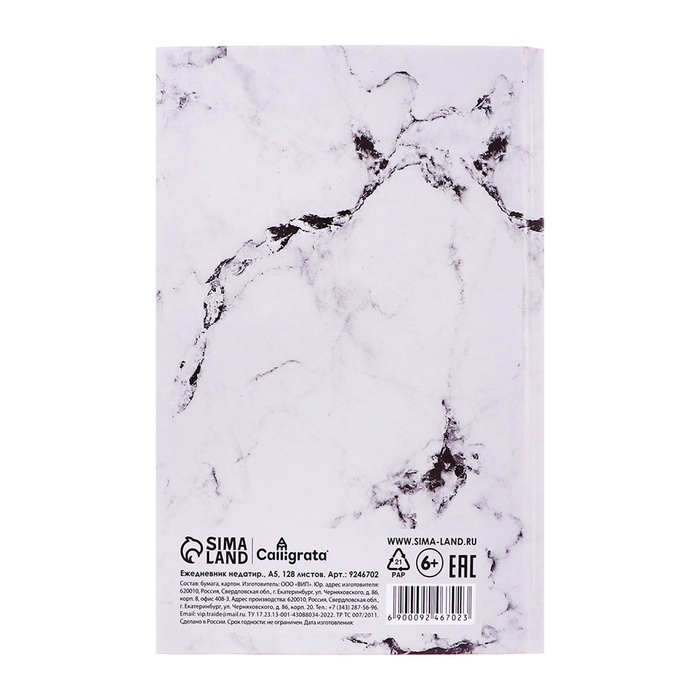 Ежедневник недатированный А5, 128 листов «БЕЛЫЙ МРАМОР», твёрдая обложка, глянцевая ламинация — Характеристики