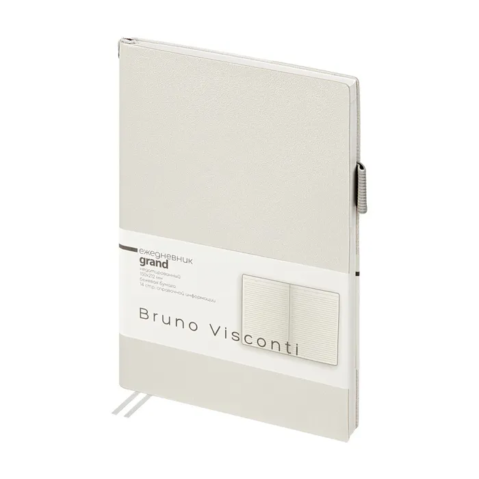 Ежедневник недатированный А5, 128 листов, GRAND, интегральная обложка из искусственной кожи, ляссе, кремовый блок 80 г/м², жемчужный — Характеристики