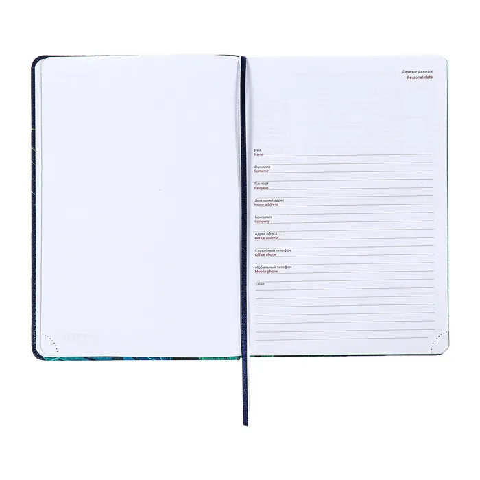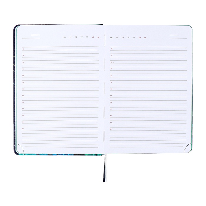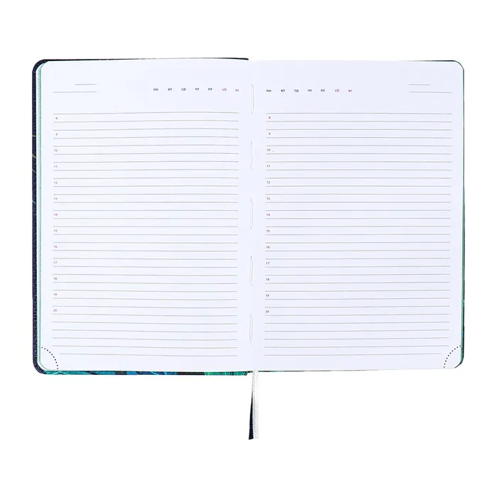 Ежедневник недатированный A5, 136 листов, deVENTE. Botanic, твёрдая обложка с поролоном из искусственной кожи, перфорация, ляссе, блок 70 г/м², синий