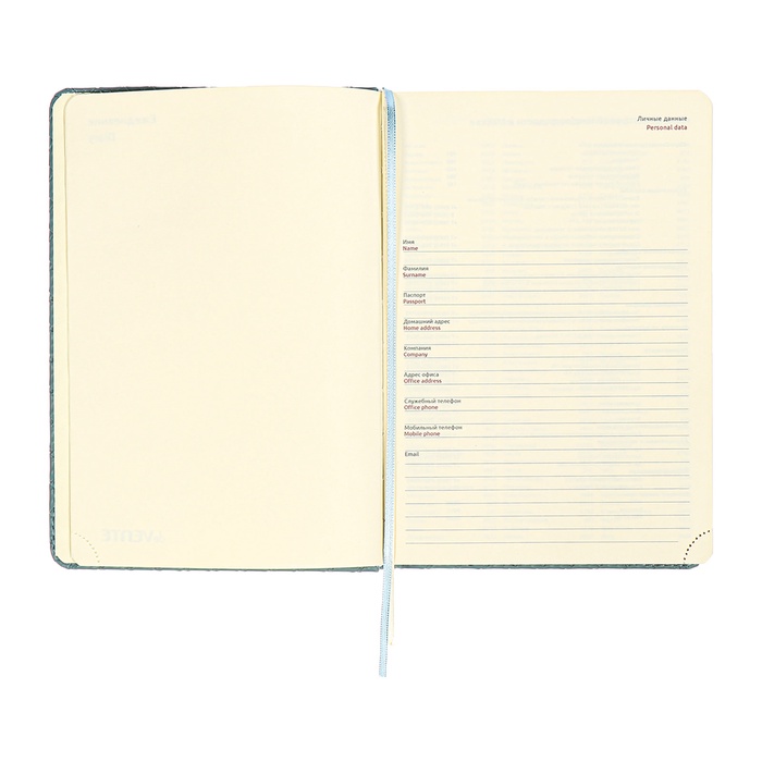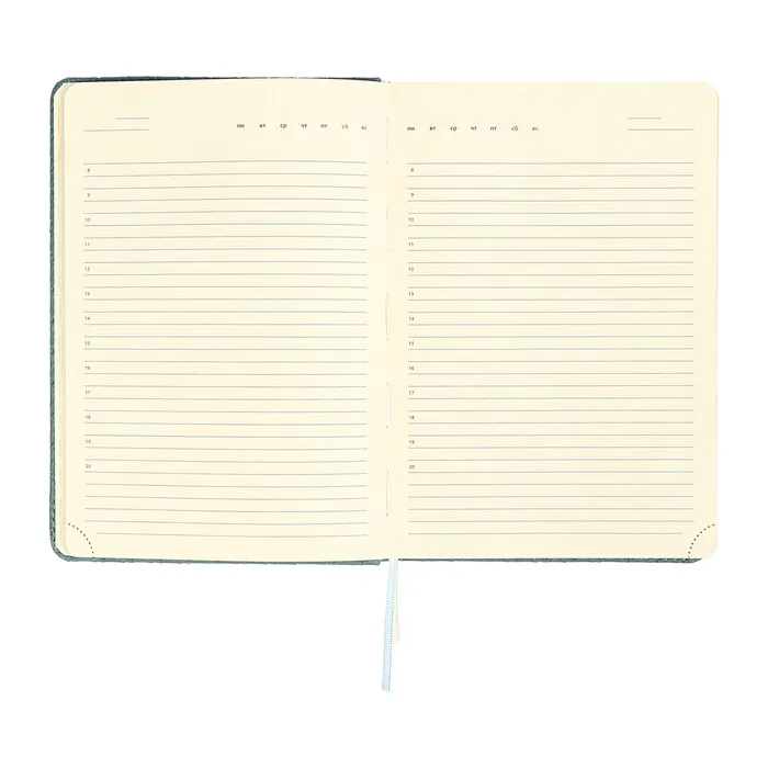 Ежедневник недатированный A5, 136 листов, deVENTE. Clair, твёрдая обложка с поролоном из искусственной кожи, перфорация, ляссе, блок 70 г/м², голубой — Характеристики