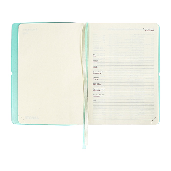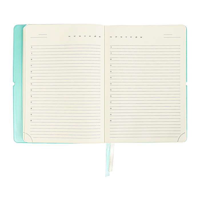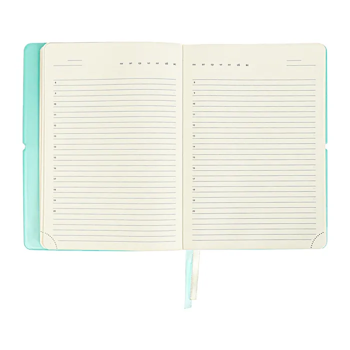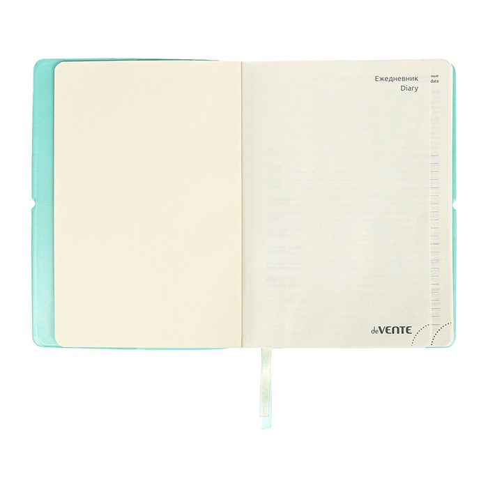 Ежедневник недатированный A5, 136 листов, deVENTE. Jane, мягкая обложка из ПВХ, резинка, перфорация, ляссе, блок 70 г/м², бирюзовый — Характеристики
