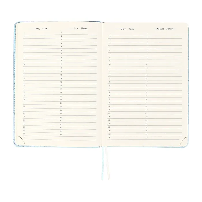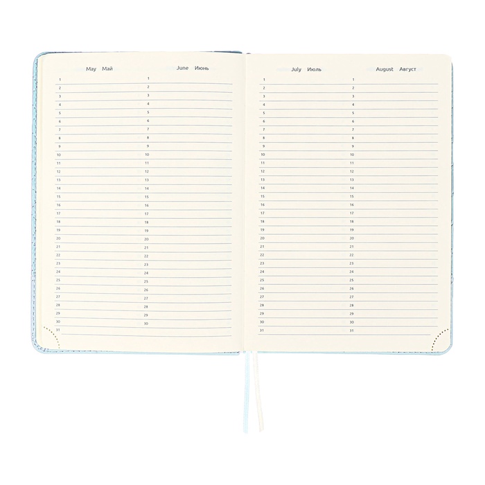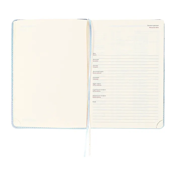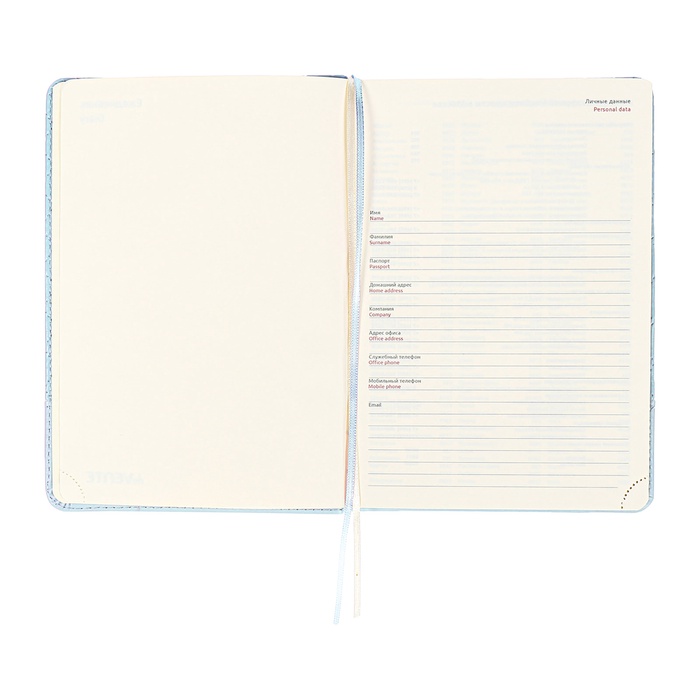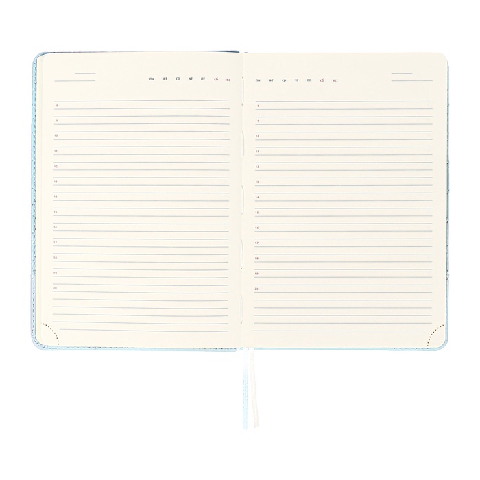 Ежедневник недатированный A5, 136 листов, deVENTE. Tailor, твёрдая обложка с поролоном из искусственной кожи, хлястик, перфорация, ляссе, блок 70 г/м², голубой — Характеристики