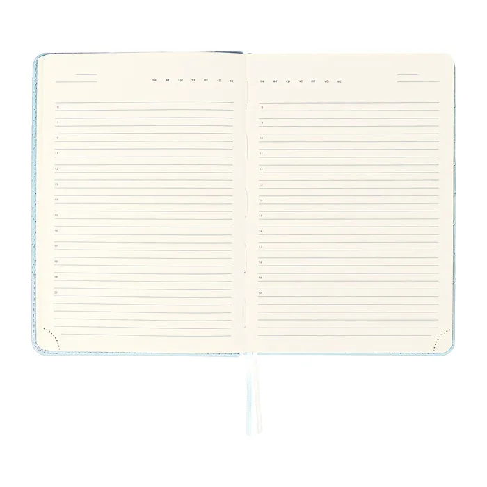 Ежедневник недатированный A5, 136 листов, deVENTE. Tailor, твёрдая обложка с поролоном из искусственной кожи, хлястик, перфорация, ляссе, блок 70 г/м², голубой
