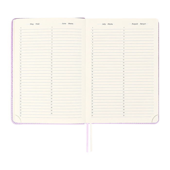 Ежедневник недатированный A5, 136 листов, deVENTE. Tailor, твёрдая обложка с поролоном из искусственной кожи, хлястик, перфорация, ляссе, блок 70 г/м², сиреневый — Характеристики