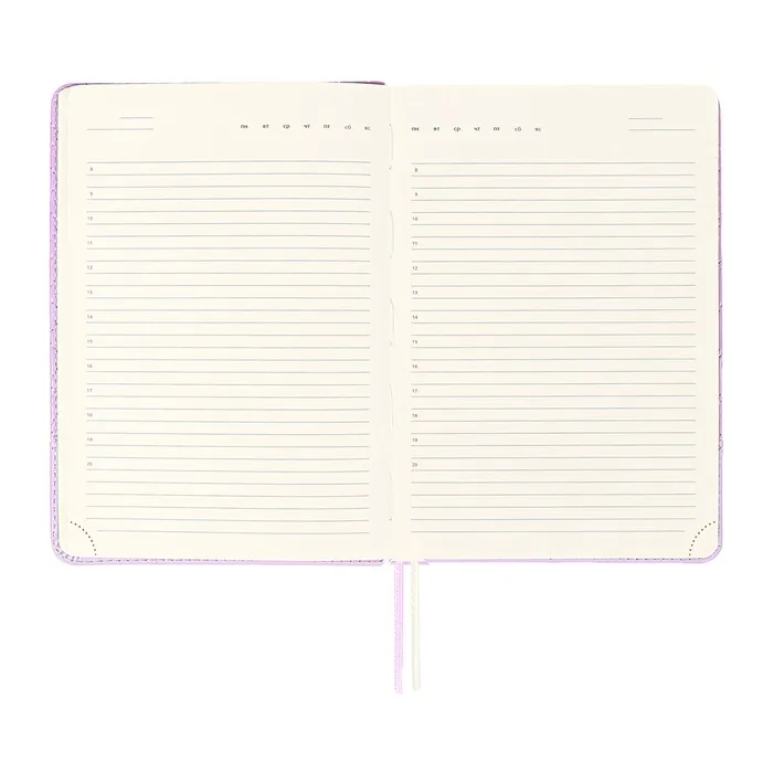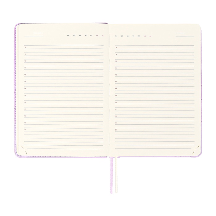 Ежедневник недатированный A5, 136 листов, deVENTE. Tailor, твёрдая обложка с поролоном из искусственной кожи, хлястик, перфорация, ляссе, блок 70 г/м², сиреневый
