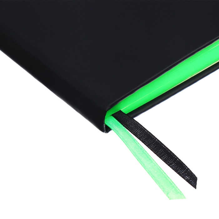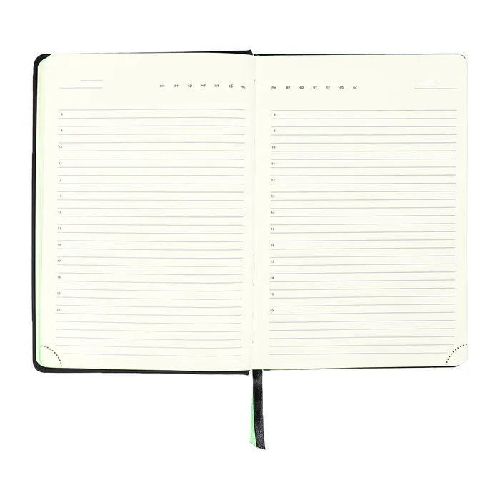 Ежедневник недатированный, A5, 136 листов, deVENTE. Ultra, твёрдая обложка из искусственной кожи, тиснение фольгой, перфорация, ляссе, блок 70 г/м², чёрный/зелёный — Характеристики