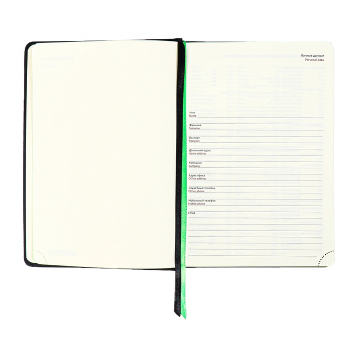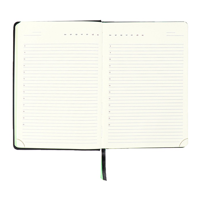 Ежедневник недатированный, A5, 136 листов, deVENTE. Ultra, твёрдая обложка из искусственной кожи, тиснение фольгой, перфорация, ляссе, блок 70 г/м², чёрный/зелёный