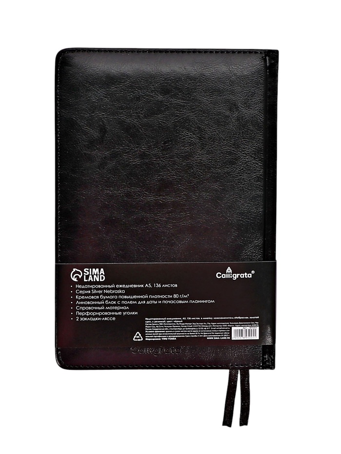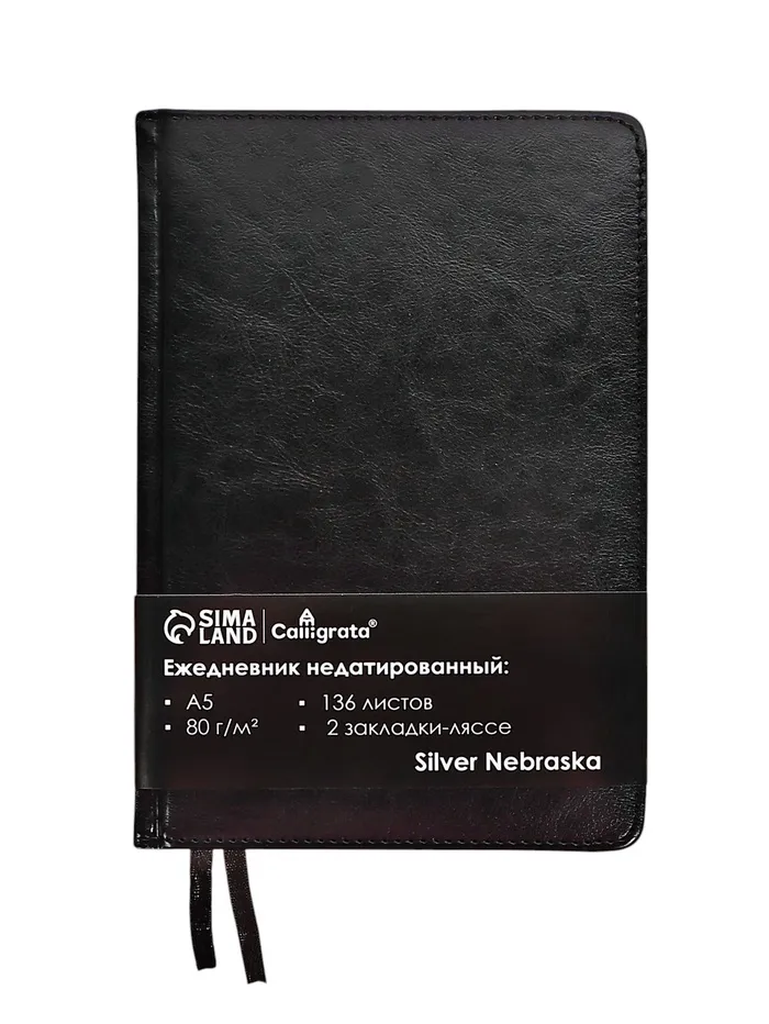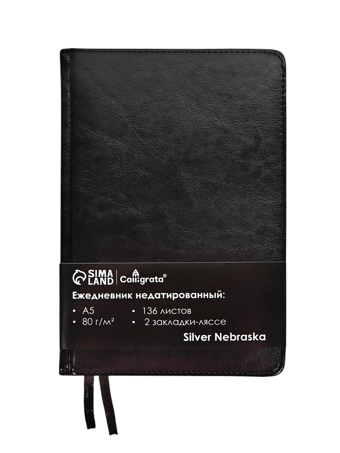 Ежедневник НЕдатированный А5, 136 листов в линейку, кожзам «Небраска», серебряный срез, чёрный — Характеристики