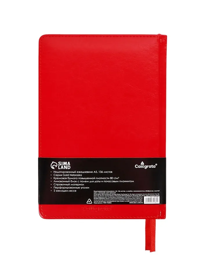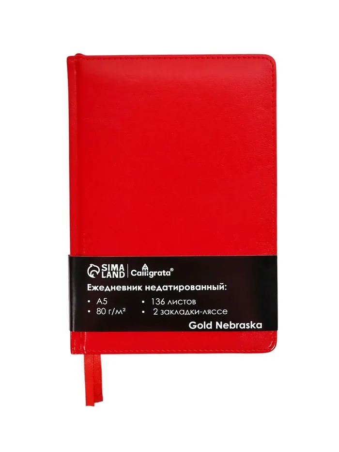 Ежедневник НЕдатированный А5, 136 листов в линейку, кожзам «Небраска», золотой срез, красный — Характеристики