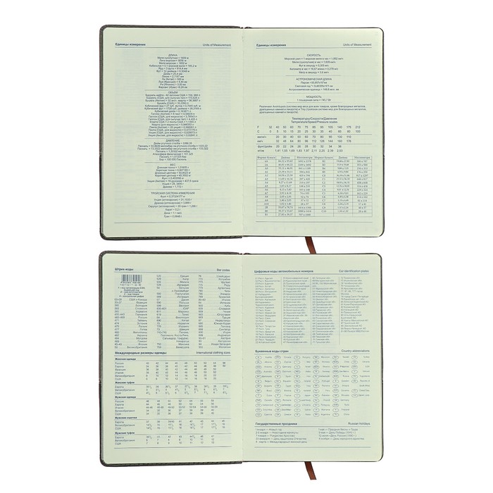 Внутренний блок включает 140 листов тонированной бумаги плотностью 70 г/м2.Каждая страничка имеет перфорированный угол.Благодаря стандартному формату А5 ежедневник удобно использовать как в офисе, так и на выездных деловых встречах.Твердая обложка, стилизованная под кожу, подходит для горячего тиснения.Дополнением является закладка - ляссе, с помощью которой при необходимости можно быстро открыть ежедневник на нужной странице.Помимо прочего ежедневник снабжен обширным справочным материалом.Ежедневник станет отличным подарком к любому празднику и событию.Стиль и изысканность, роскошь и практичность, совершенство снаружи и внутри - всем этим требованиям достойно отвечает продукция.