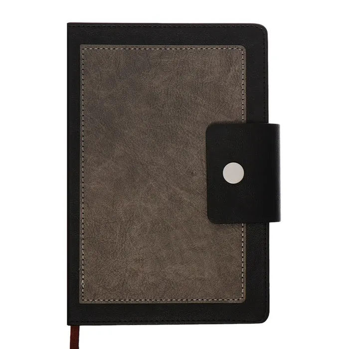 Ежедневник недатированный, А5, 140л, клетка, обл.кожзам, на кнопке, Черный/серый — Характеристики