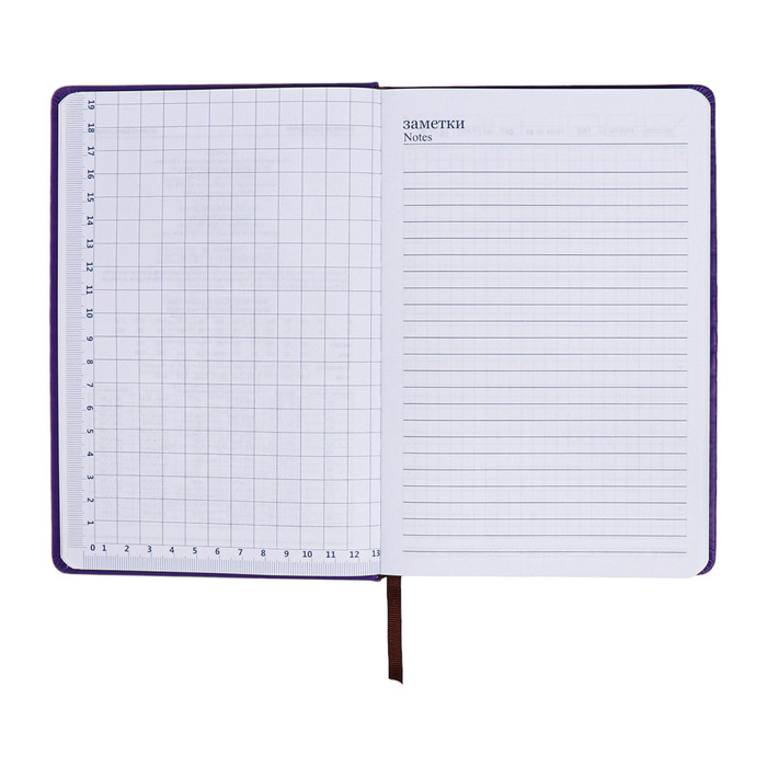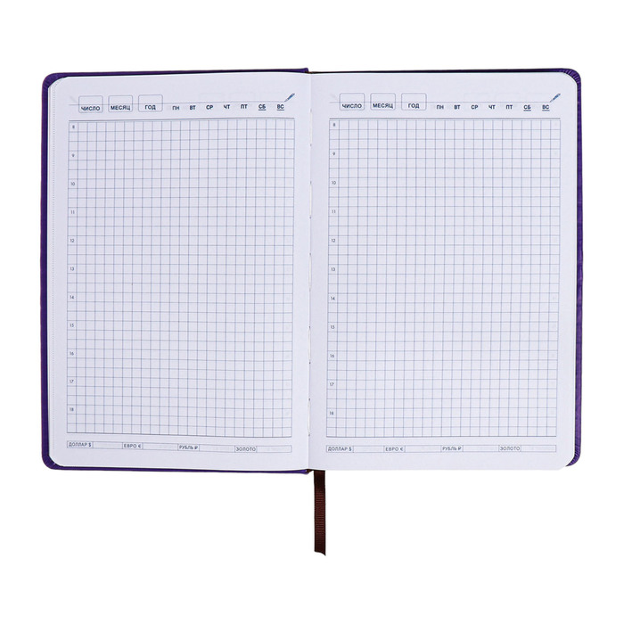 Ежедневник недатированный, А5, 140л, клетка, обл.кожзам, с хлястиком, Цветы, фиолетовый — Характеристики