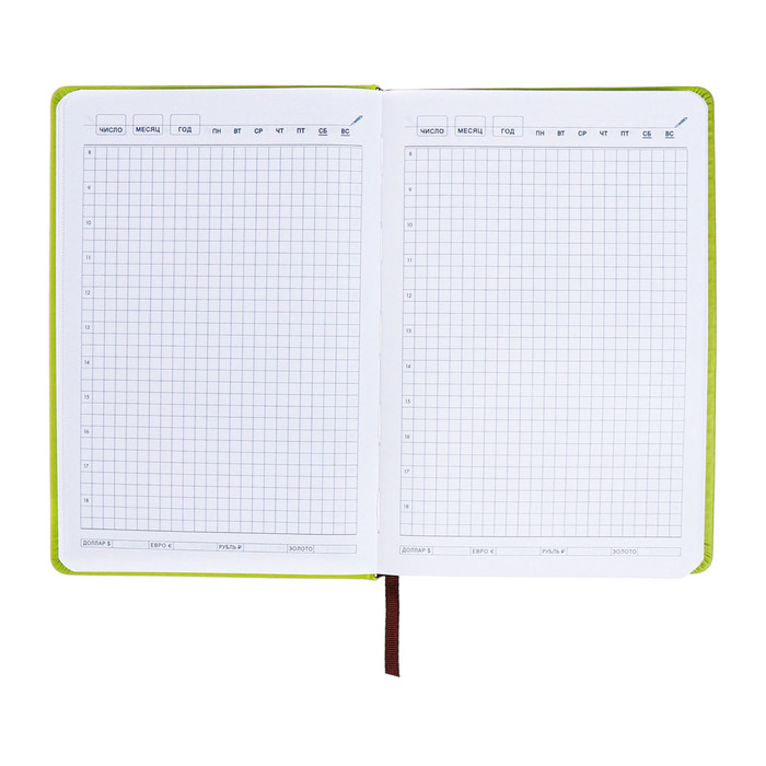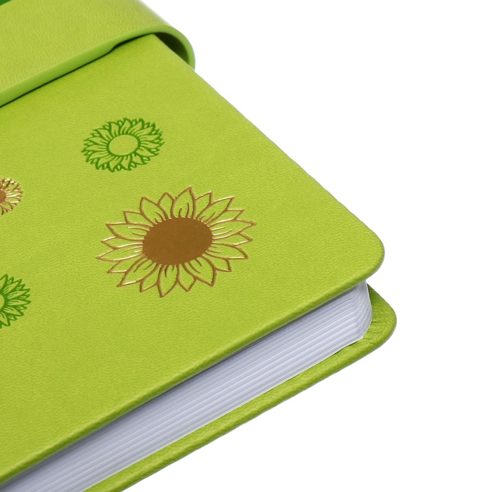 Ежедневник недатированный, А5, 140л, клетка, обл.кожзам, с хлястиком, Цветы, зеленый — Характеристики