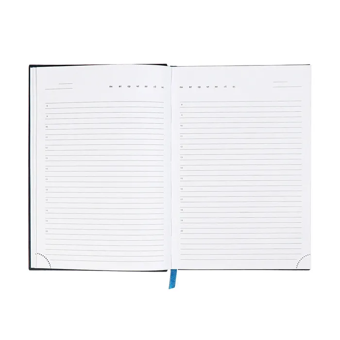 Ежедневник недатированный, A5, 160 листов, Attomex. Lancaster, твёрдая обложка балакрон с поролоном, тиснение фольгой, перфорация, ляссе, блок 70%, синий — Характеристики