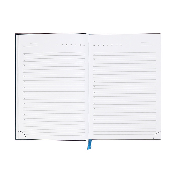 Ежедневник недатированный, A5, 160 листов, Attomex. Lancaster, твёрдая обложка балакрон с поролоном, тиснение фольгой, перфорация, ляссе, блок 70%, синий — Характеристики