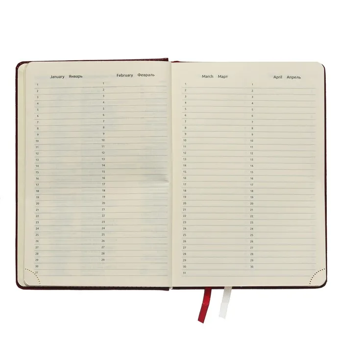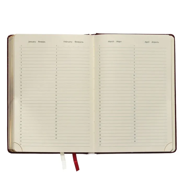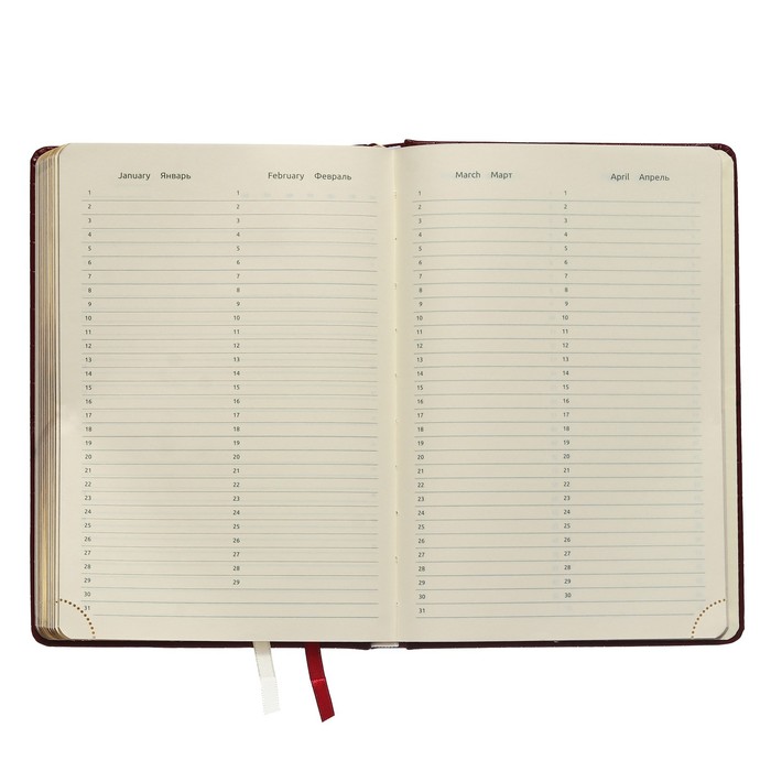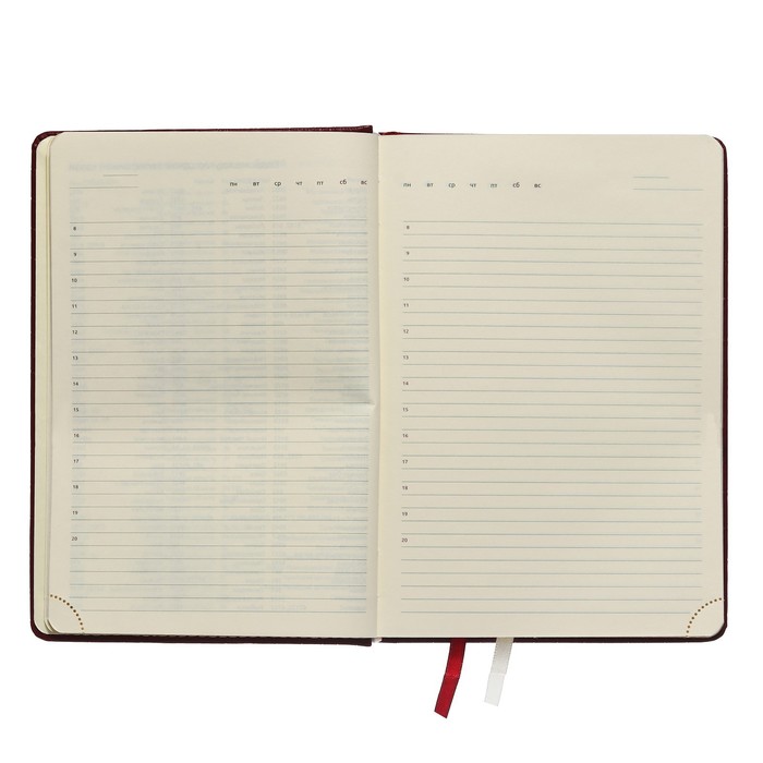 Ежедневник недатированный А5, 160 листов, deVENTE. Wild, твёрдая обложка с поролоном из искусственной кожи, термо тиснение, перфорация, ляссе, кремовый блок 70 г/м2, бордовый — Характеристики