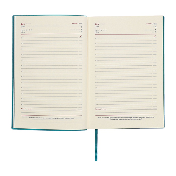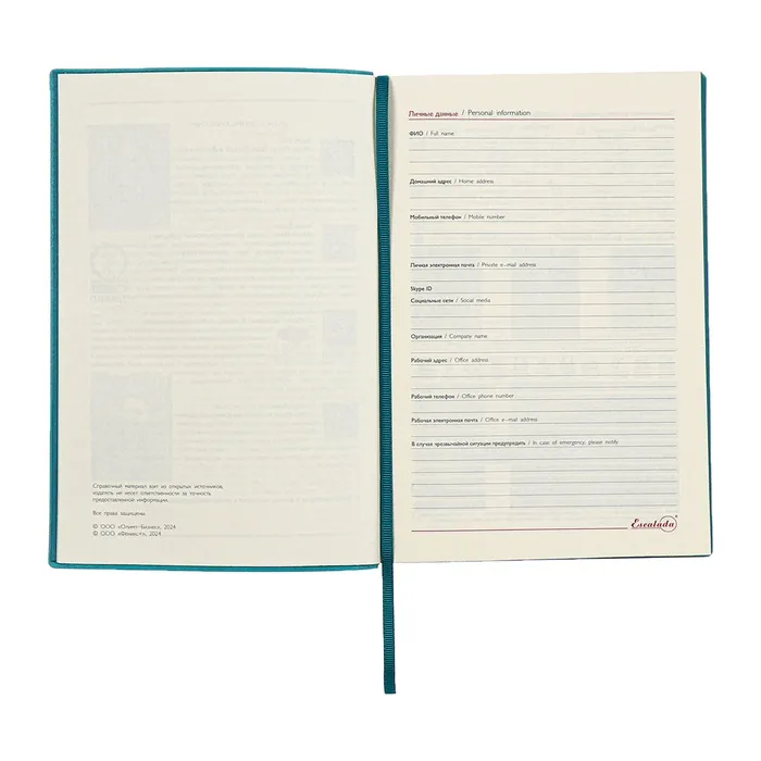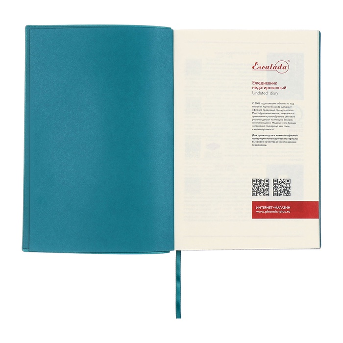 Ежедневник недатированный А5, 160 листов ESCALADA, мягкая обложка из искусственной кожи, ляссе, тонированный блок 70 г/м², бирюзовый — Характеристики