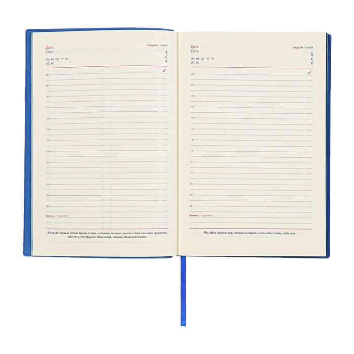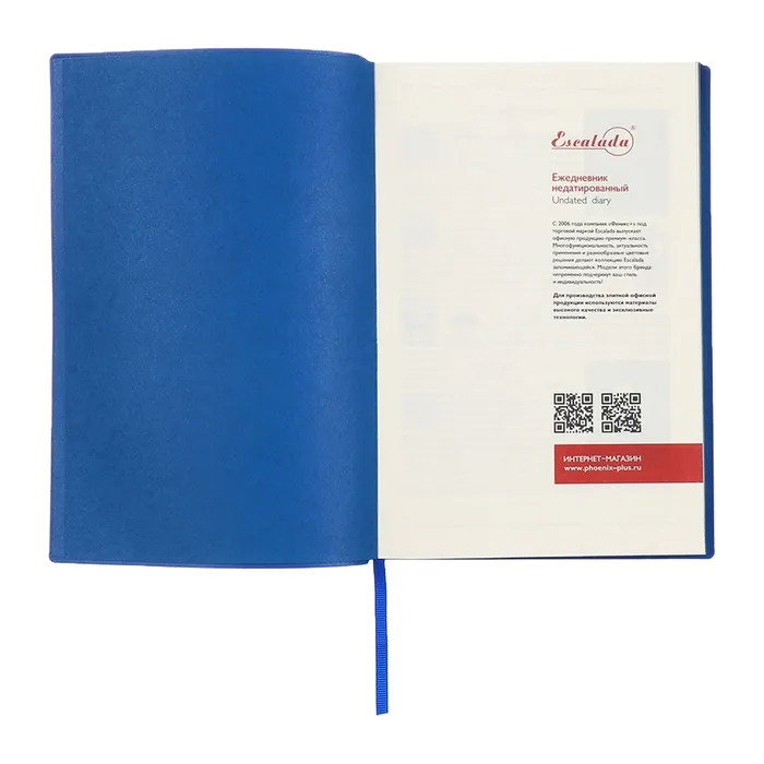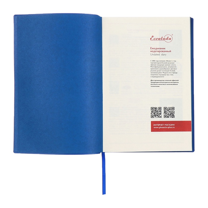 Ежедневник недатированный А5, 160 листов, ESCALADA, мягкая обложка из искусственной кожи, ляссе, тонированный блок 70 г/м², синий