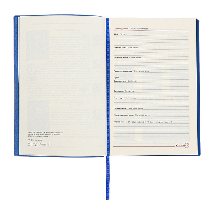 Ежедневник недатированный А5, 160 листов, ESCALADA, мягкая обложка из искусственной кожи, ляссе, тонированный блок 70 г/м², синий — Характеристики