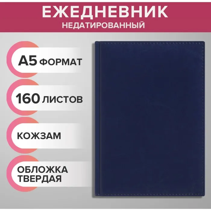 Ежедневник недатированный А5, 160 листов «Небраска», обложка искусственная кожа, синий — Характеристики