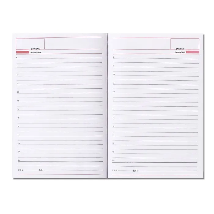 Недатированный ежедневник вы сами проставляете даты своих дел. Вам не обязательно прописывать в нем каждый день, вы можете использовать эти дни для дополнительных записей и примечаний к тем дням, в которые у вас все довольно плотно забито.