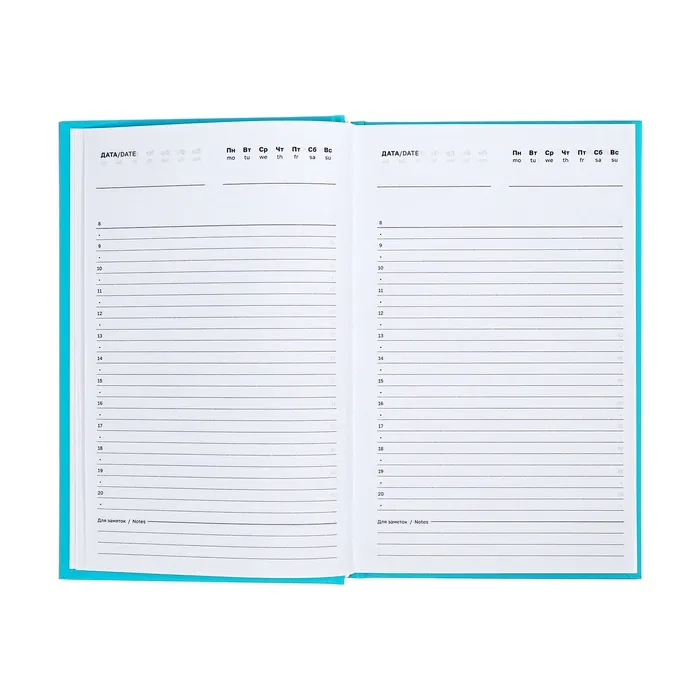Недатированный ежедневник вы сами проставляете даты своих дел. Вам не обязательно прописывать в нем каждый день, вы можете использовать эти дни для дополнительных записей и примечаний к тем дням, в которые у вас все довольно плотно забито.