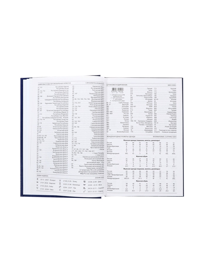 Внутри наших недатированных ежедневников есть различные справочные материалы