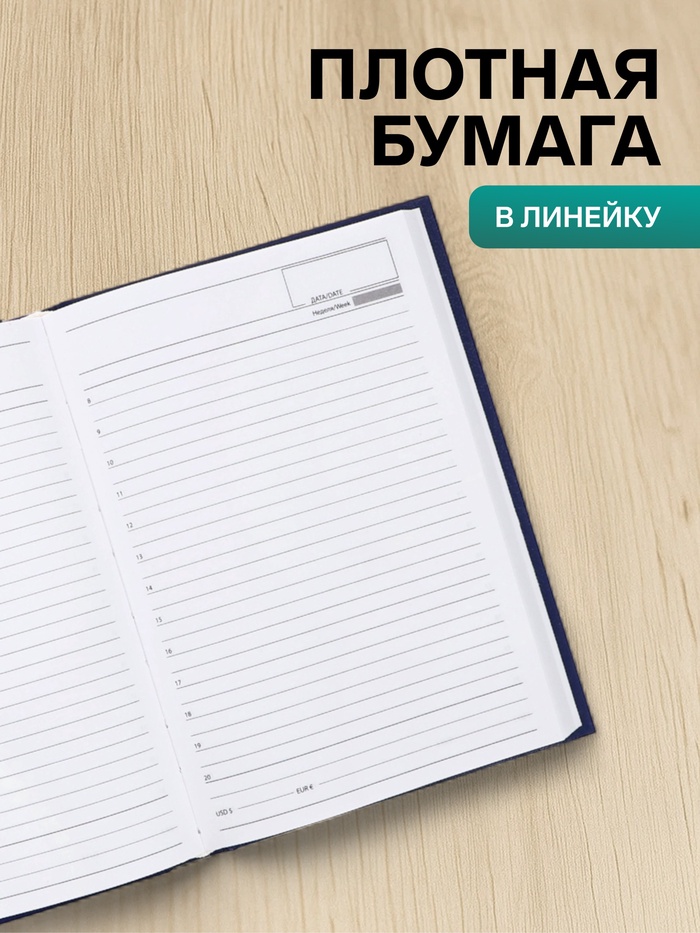 Ежедневник недатированный А5, 160 листов, обложка бумвинил, синий — Характеристики