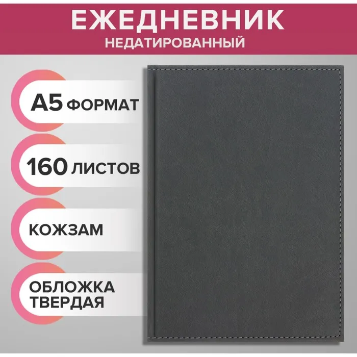 Ежедневник недатированный А5, 160 листов «Вивелла», обложка искусственная кожа, серый — Характеристики