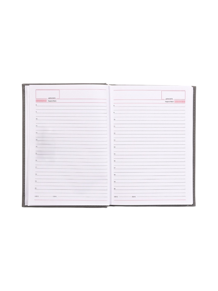 Недатированный ежедневник вы сами проставляете даты своих дел. Вам не обязательно прописывать в нем каждый день, вы можете использовать эти дни для дополнительных записей и примечаний к тем дням, в которые у вас все довольно плотно забито.