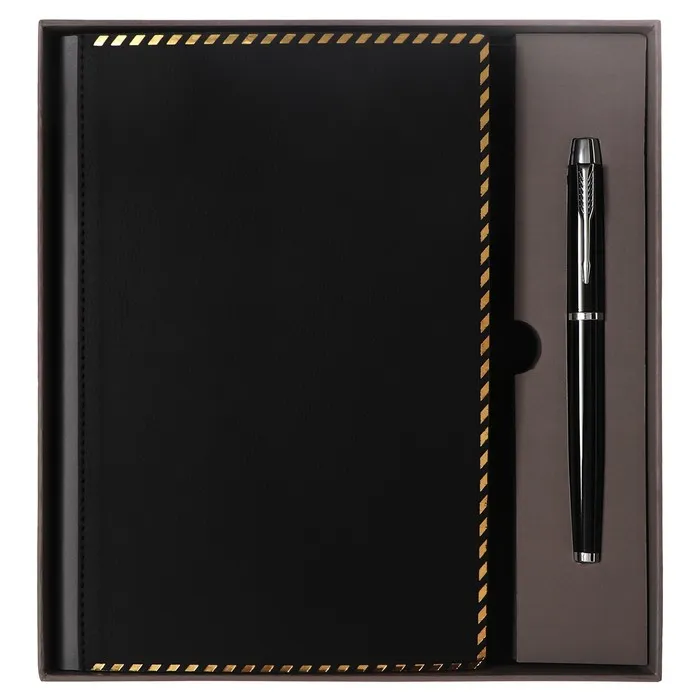 Ежедневник недатированный А5, 80 листов, линия, обложка кожзам, с ручкой, в подарочной коробке, черный — Характеристики