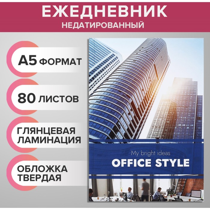 Ежедневник недатированный А5, 80 листов, твёрдая обложка, глянцевая ламинация, «ОФИС. Коллаж», блок офсет — Характеристики