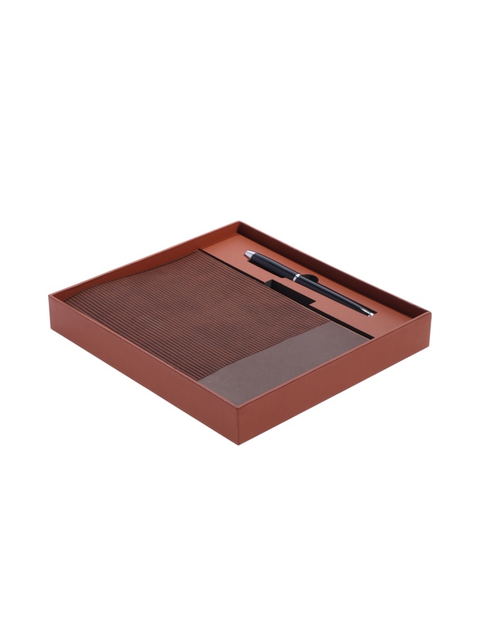 Ежедневник недатированный А5, 80 листов, в линейку, с ручкой, подарочная коробка, коричневый — Характеристики