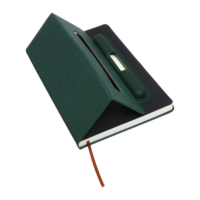 Ежедневник недатированный A5, 96л, лин, держатель для телефона/планшета/ручки, Зеленый — Характеристики