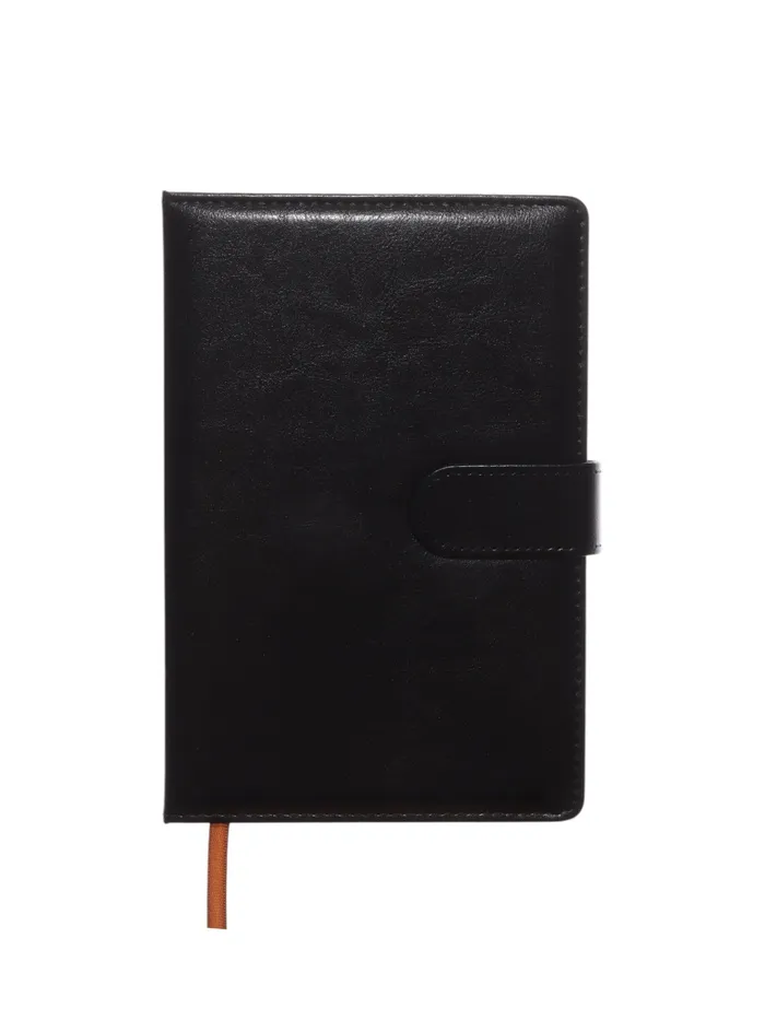 Ежедневник недатированный А5, с хлястиком, 112 листов, в линейку, пвх, классика, черный — Характеристики