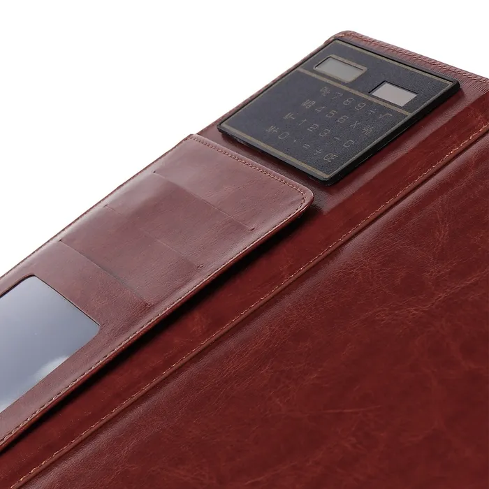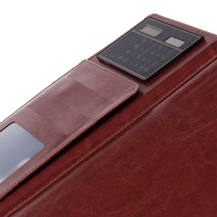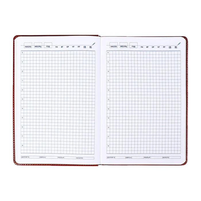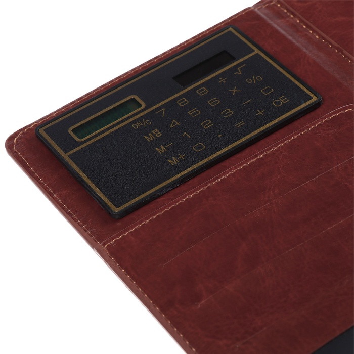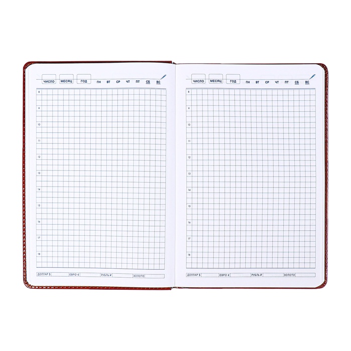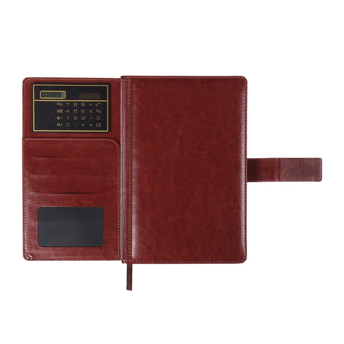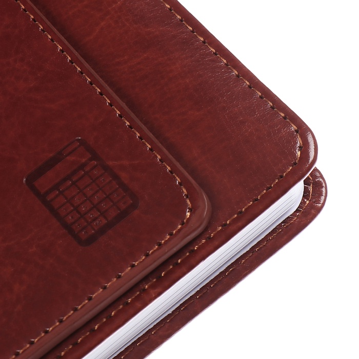 Ежедневник недатированный, формат А5, 140 листов, в клетку, обложка кожзам, с хлястиком, с калькулятором, коричневый — Характеристики