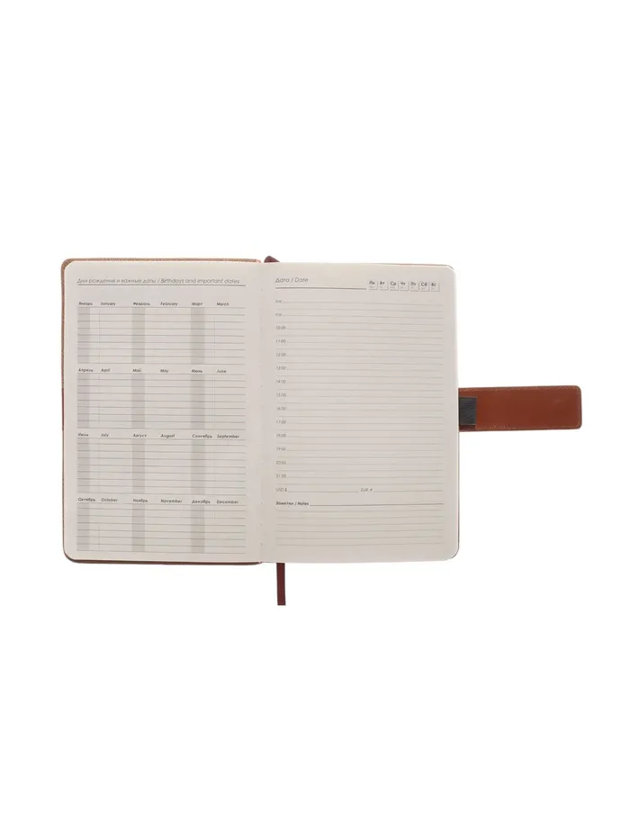 Ежедневник недатированный формат А5, с хлястиком, 128 листов, линия, пвх, коричневый — Характеристики