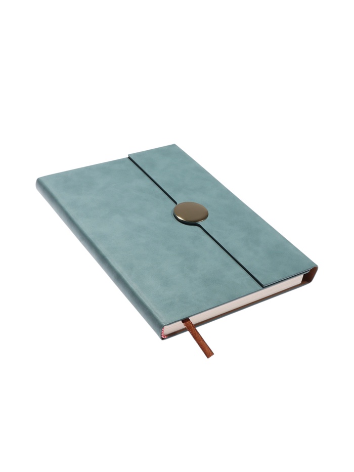 Зелёный блокнот А5 с твёрдой ПВХ-обложкой и клапаном сочетает практичность и лаконичность для работы и учёбы.